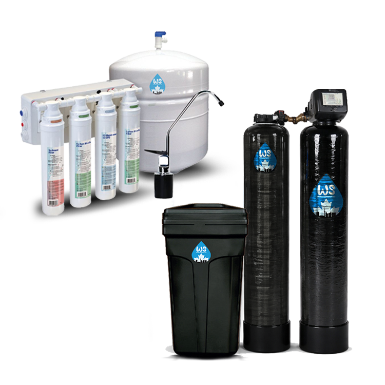 It includes high performance systems such as Platinum RO, Platinum Softener, and Whole-Home Chlorine Removal Tank, with the longest warranties and easiest upkeep, making it the most complete package.